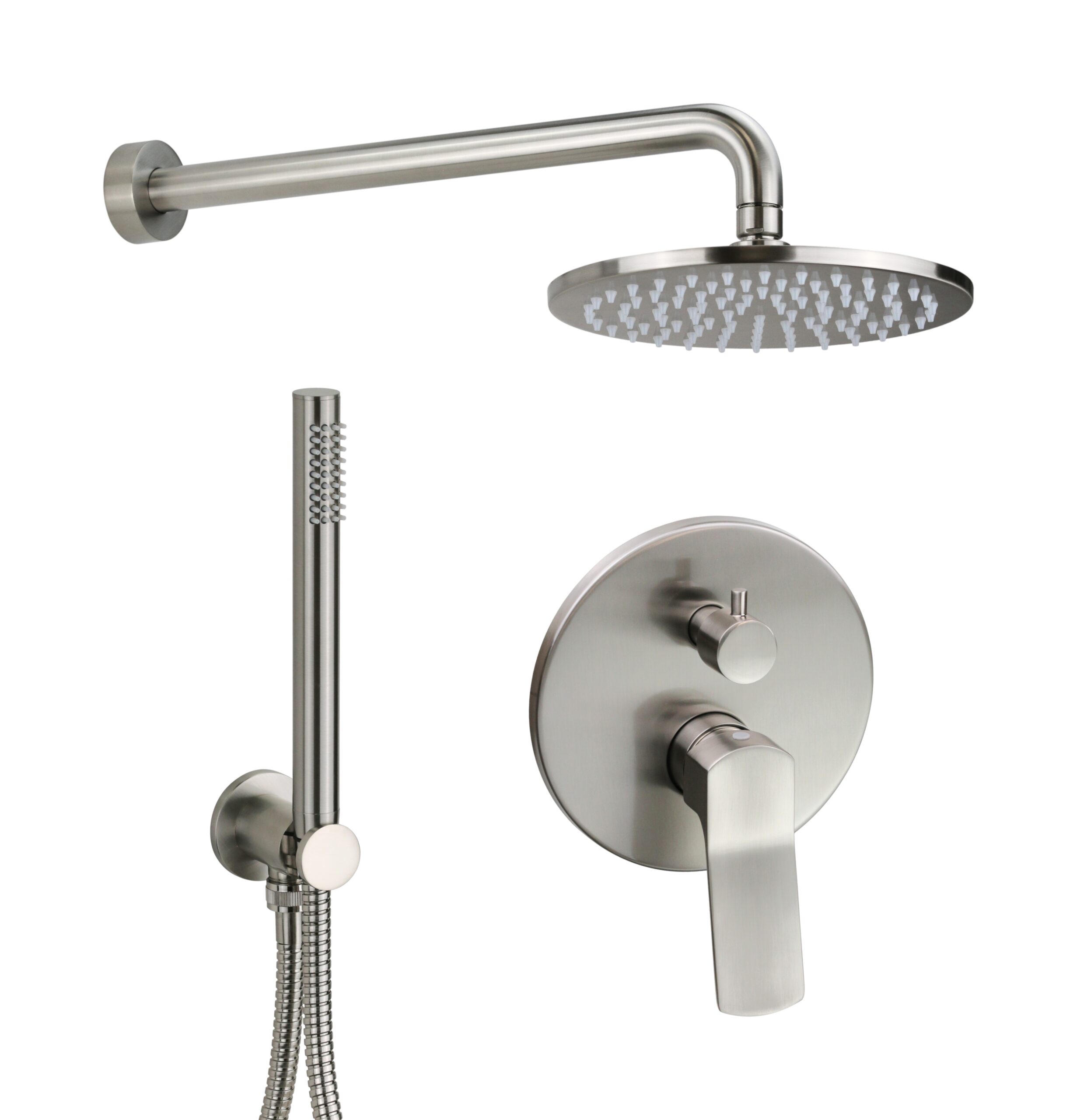 Kit doccia completo acciaio spazzolato con miscelatore doccia incasso a 2 vie Kora C47781264NS