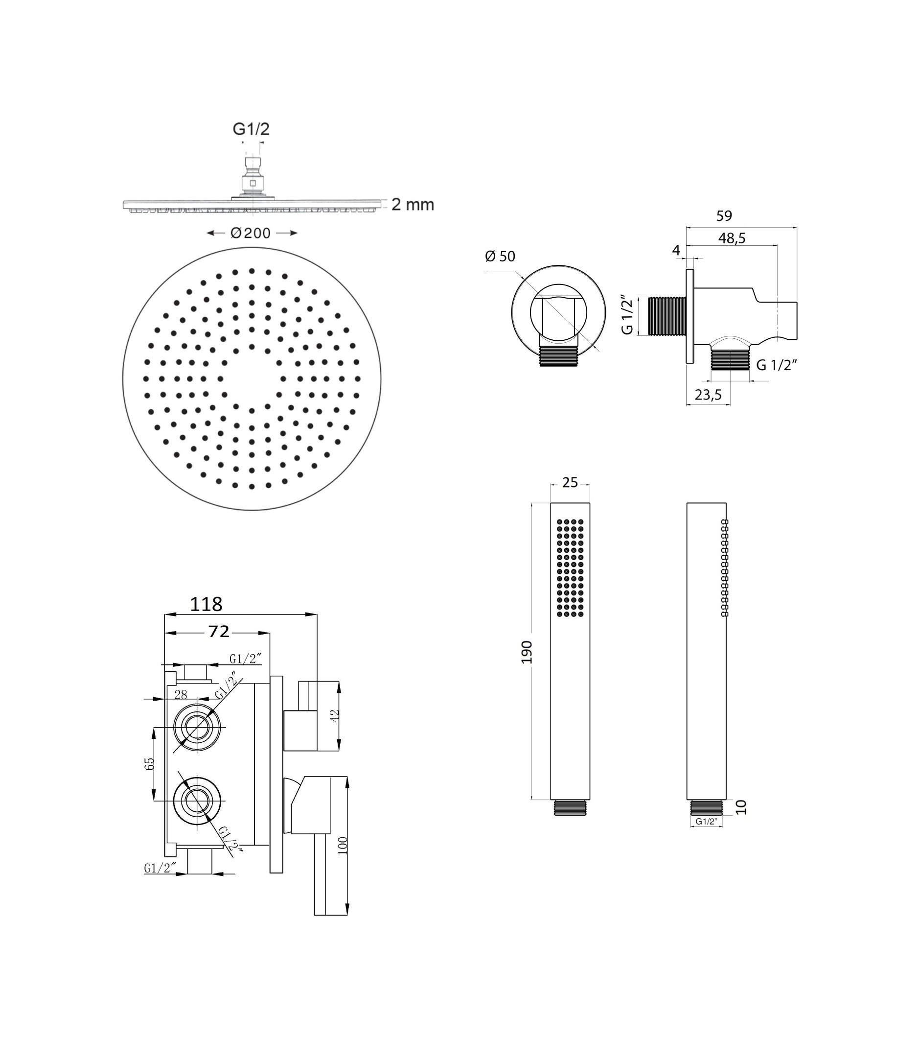 Soffione doccia 200 mm