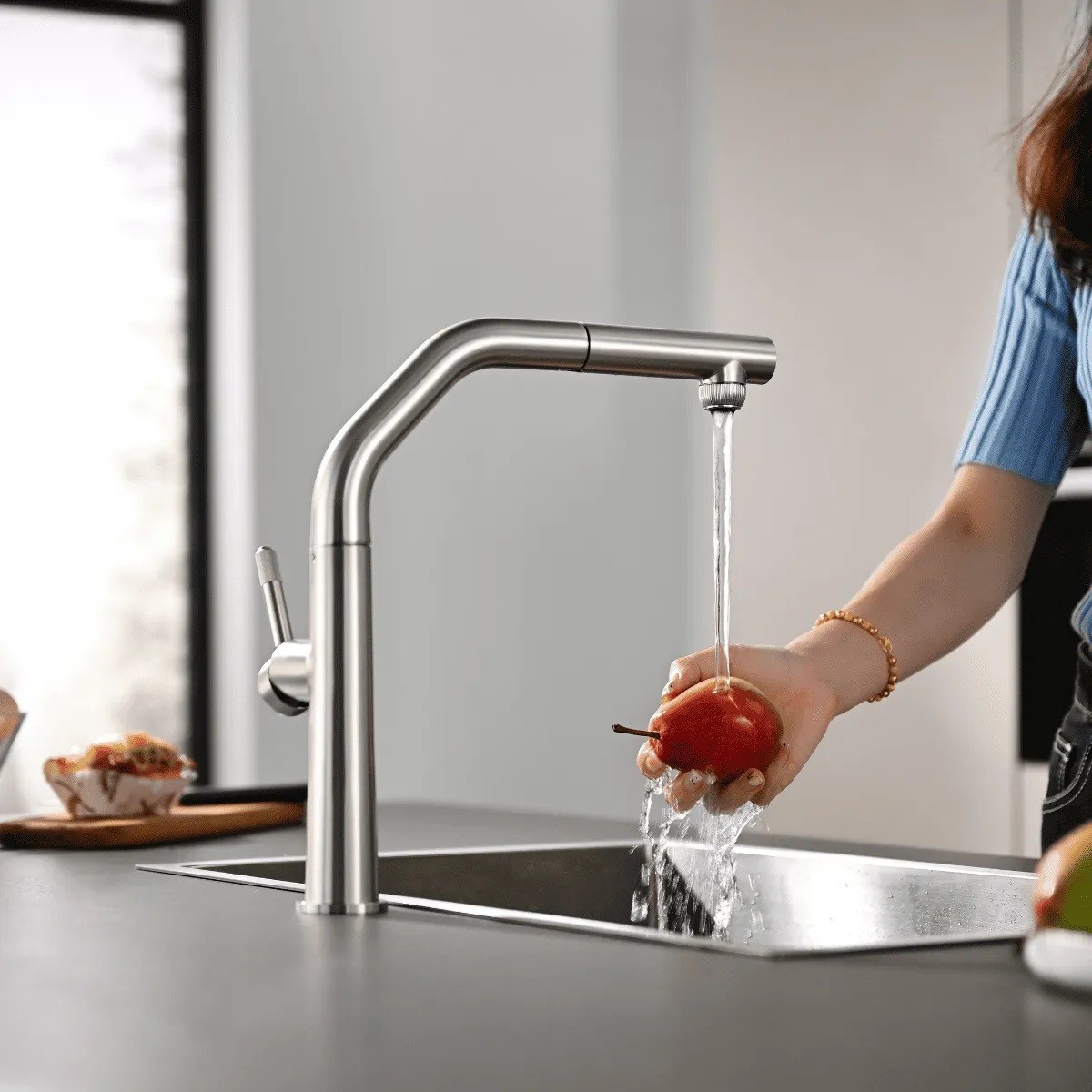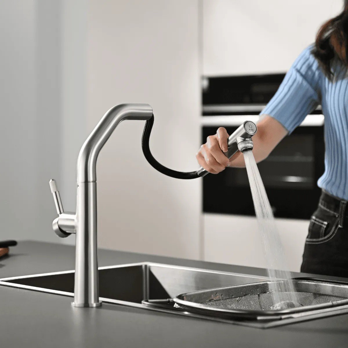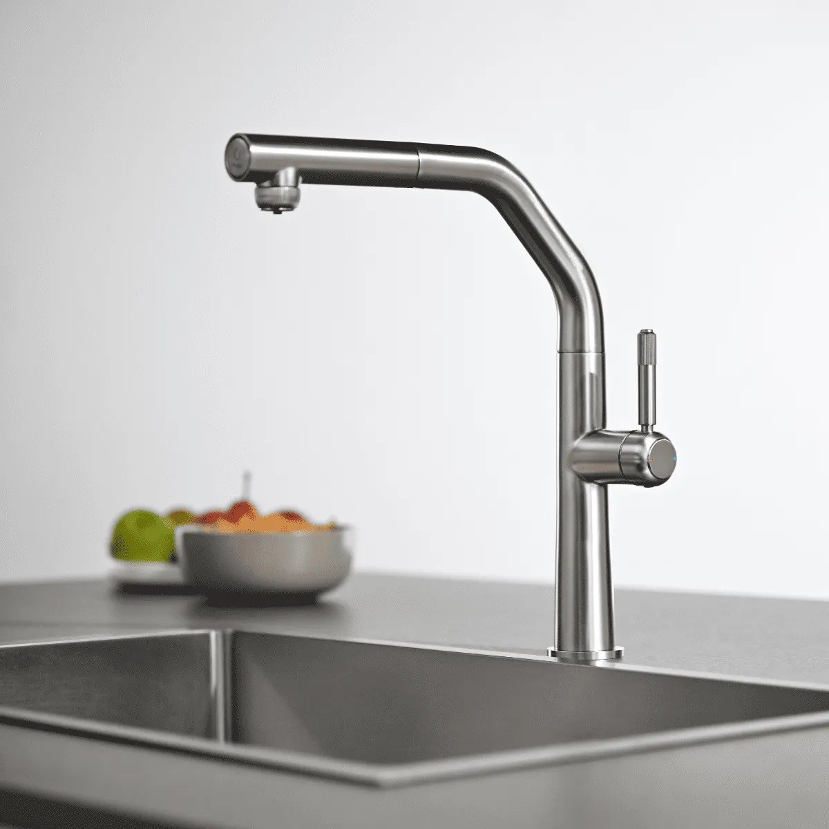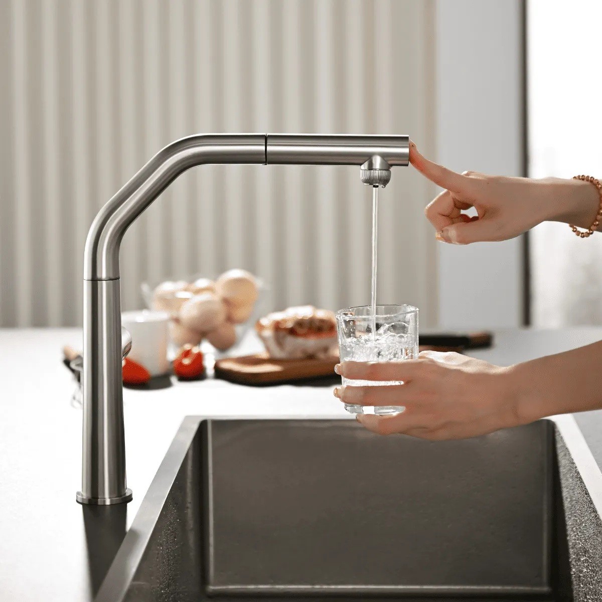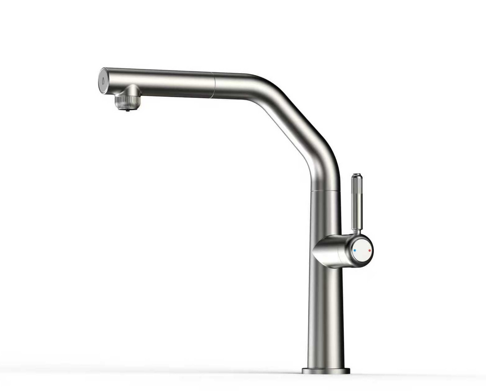 Miscelatore cucina in acciaio con sistema depurazione e doccia estraibile