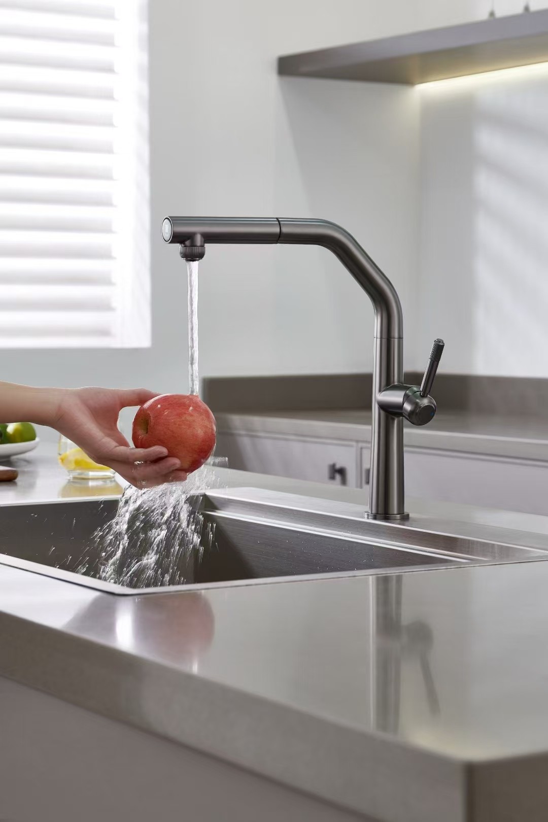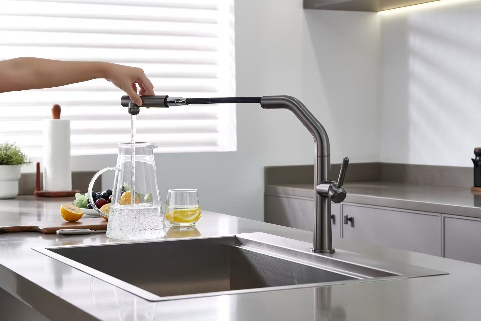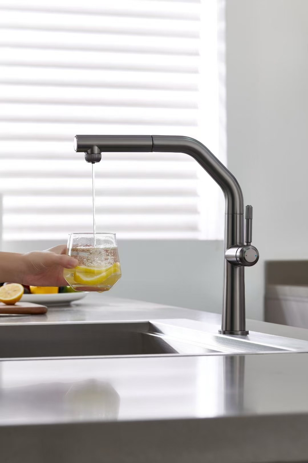 Miscelatore lavello cucina in acciaio colore PVD Gunmetal doccia estraibile sistema di filtrazione