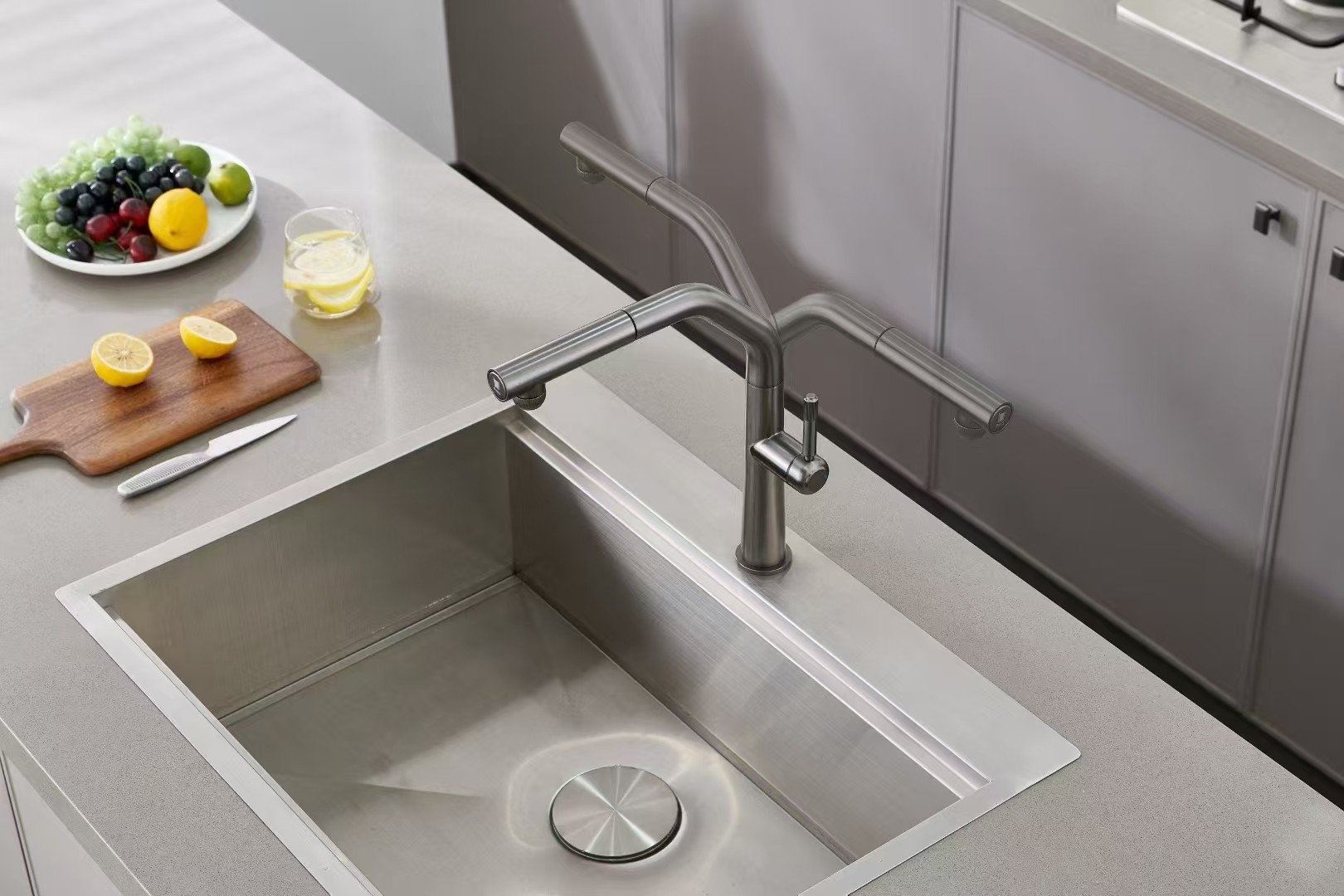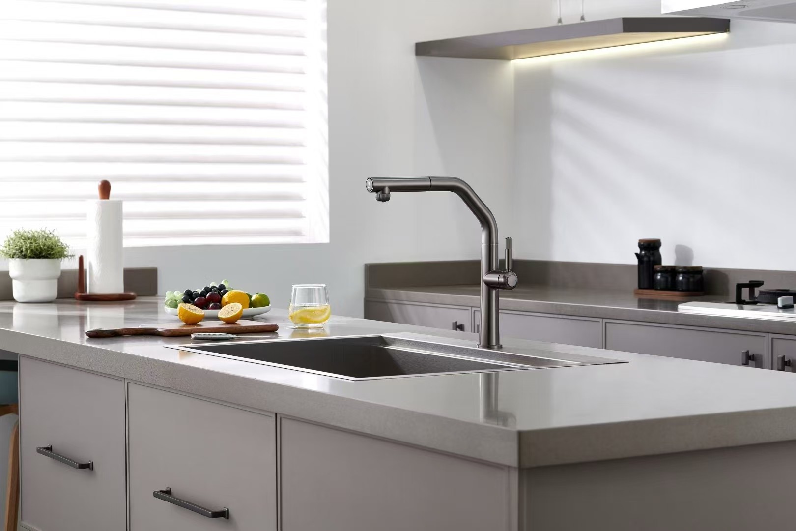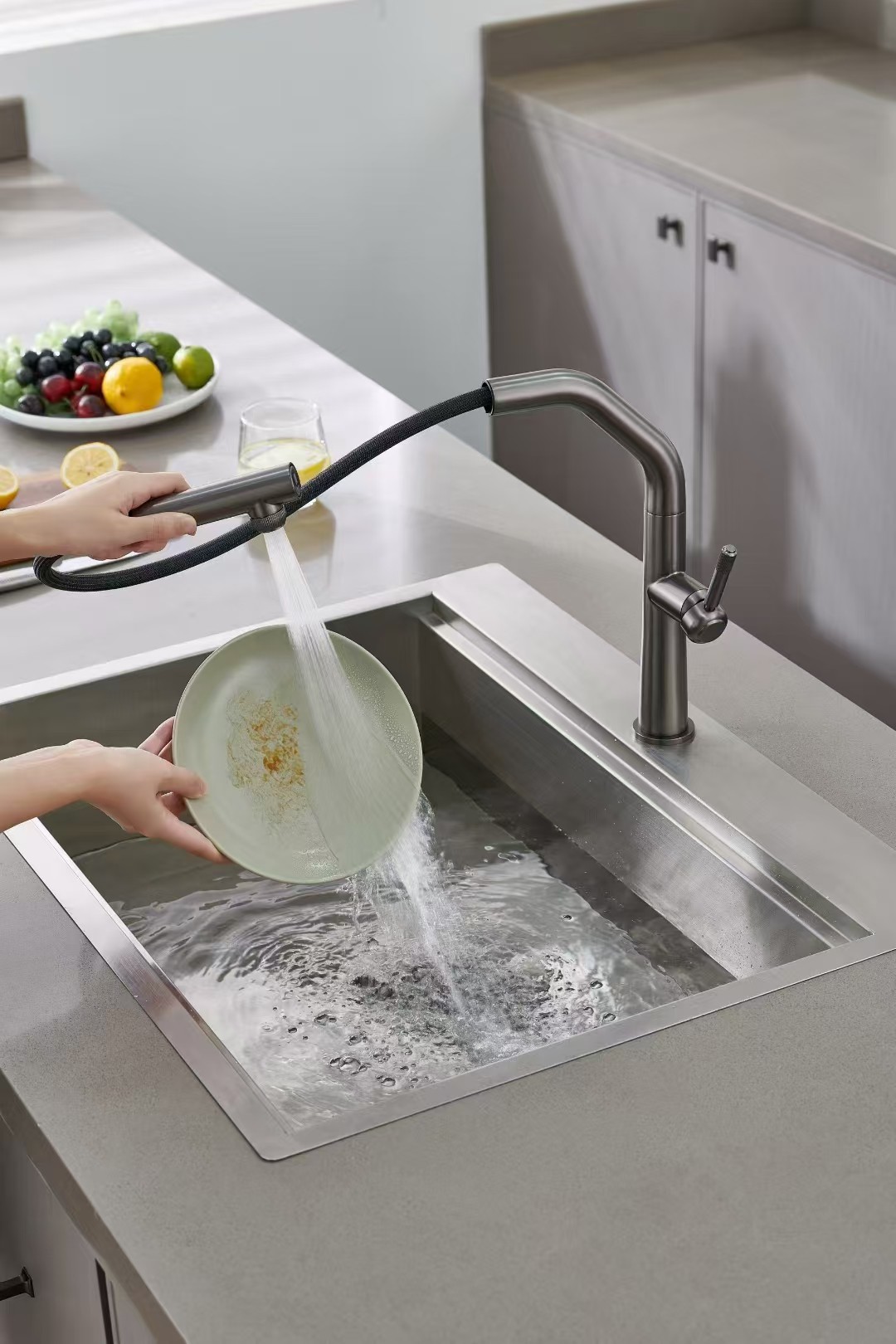 Miscelatore lavello cucina in acciaio colore PVD Gunmetal doccia estraibile sistema di filtrazione
