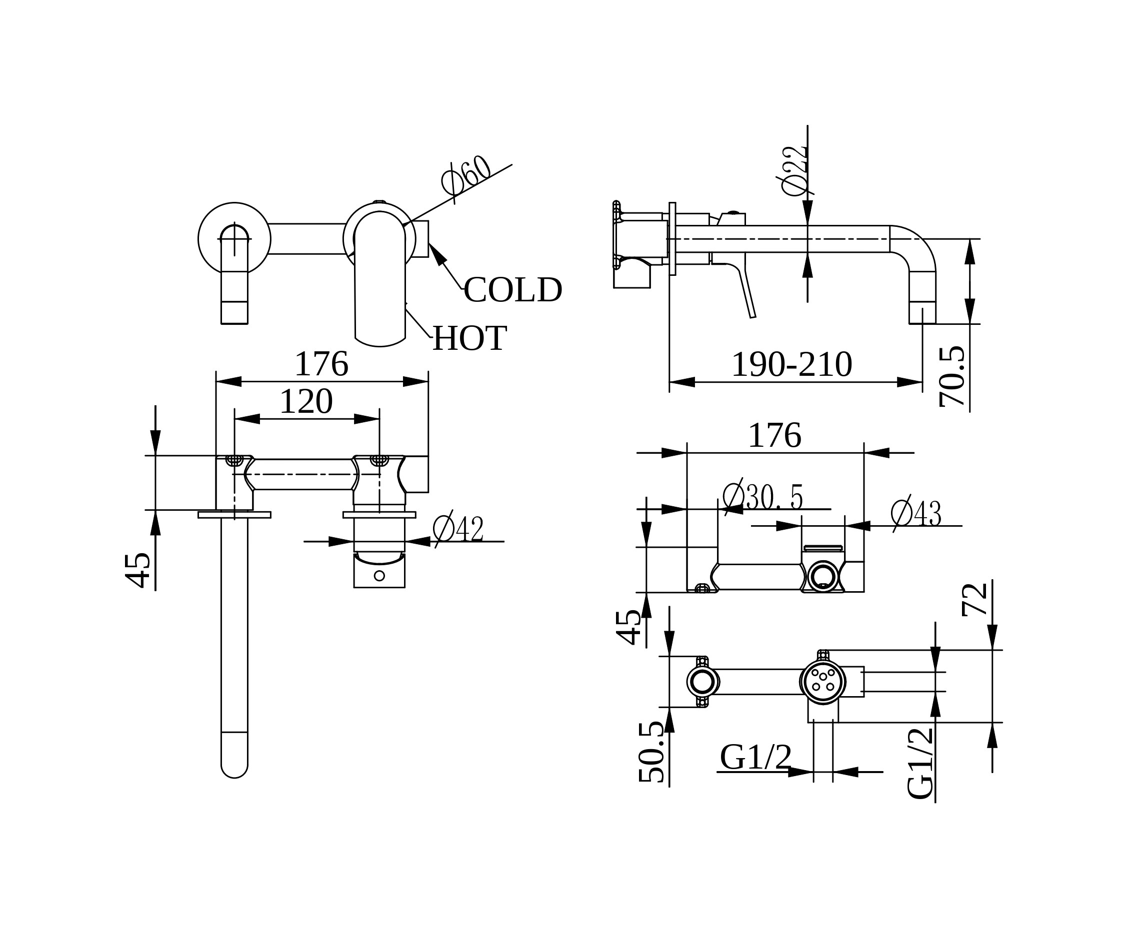 Miscelatore monocomando lavabo a parete con leva inclinata corpo incasso e piletta clic-clac inclusi Pollini Kora MXLIMCLMCCR
