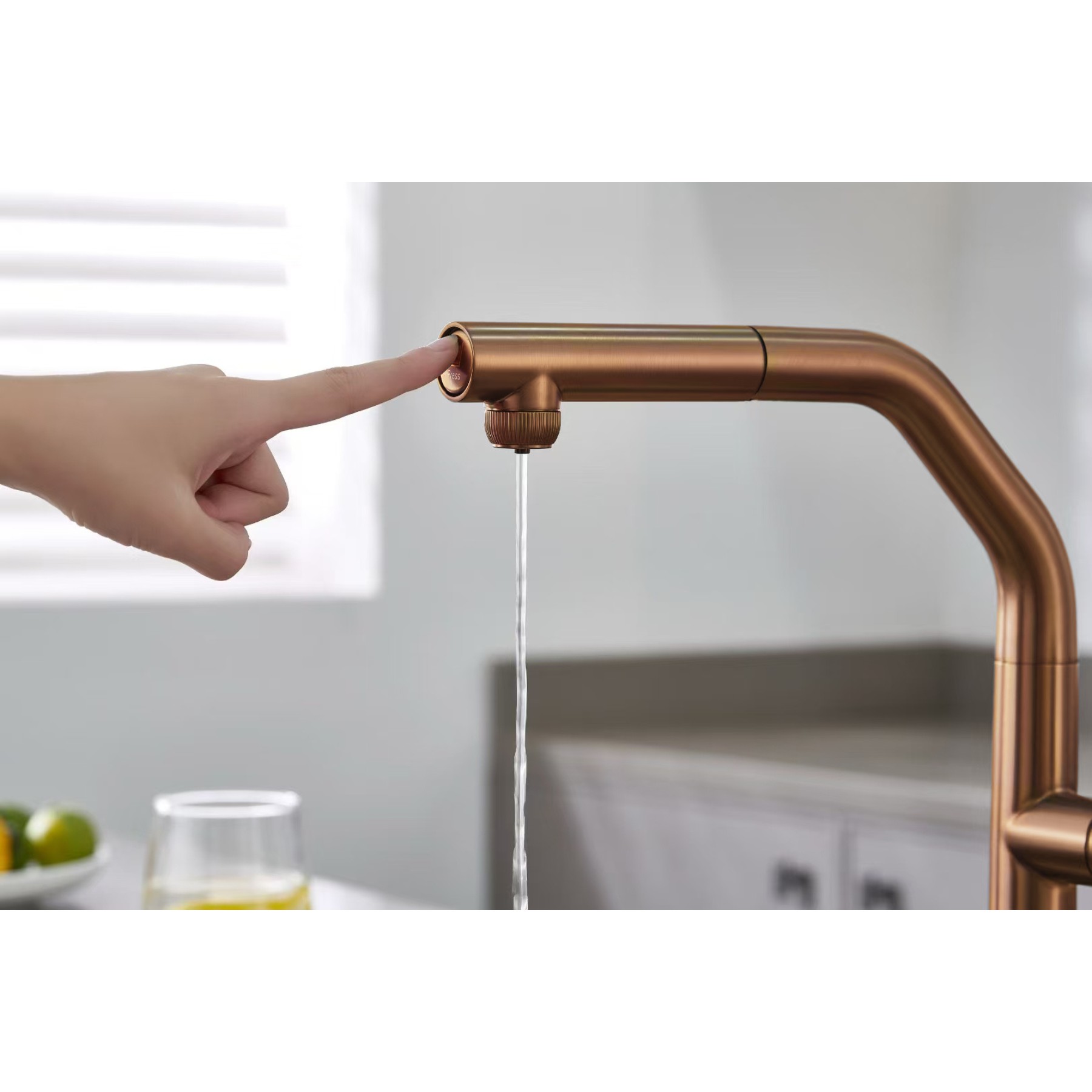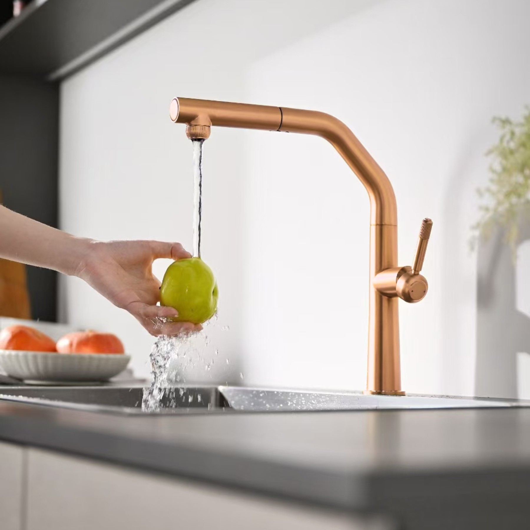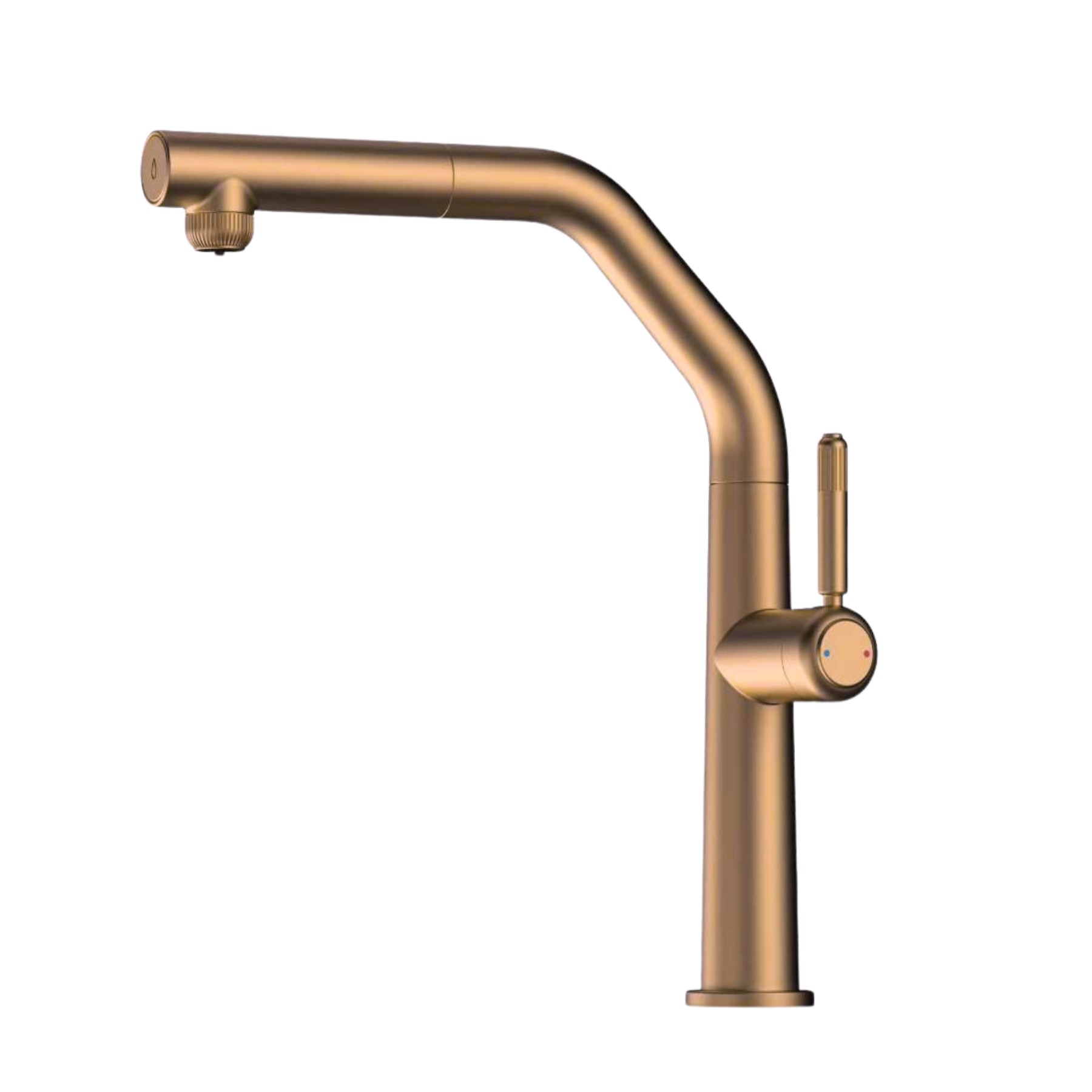 Miscelatore per lavello cucina in PVD Rose gold doccia estraibile sistema acqua depurata